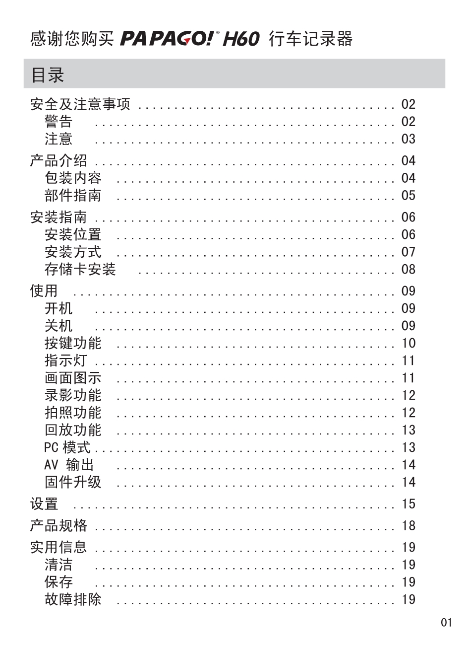 PAPAGO行车记录仪 GosafeH60Plus 中文说明书