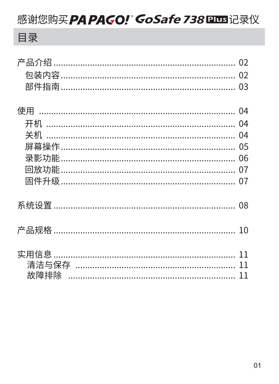 PAPAGO GoSafe738Plus流媒体行车记录仪使用说明书